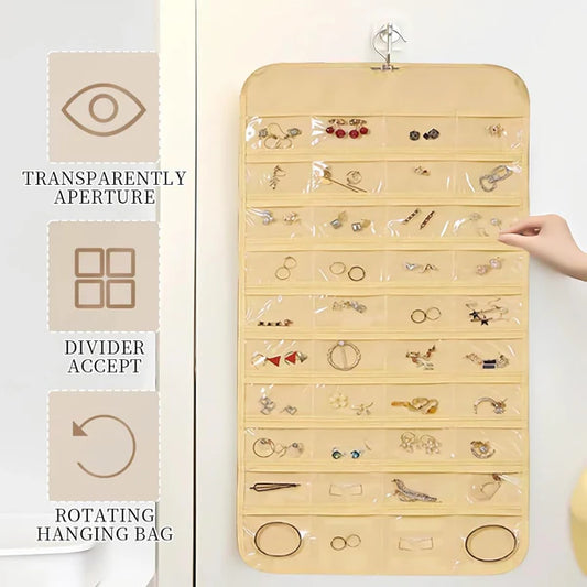 Double-Sided Hanging Jewelry Organizer – 80-Pocket Storage Solution
